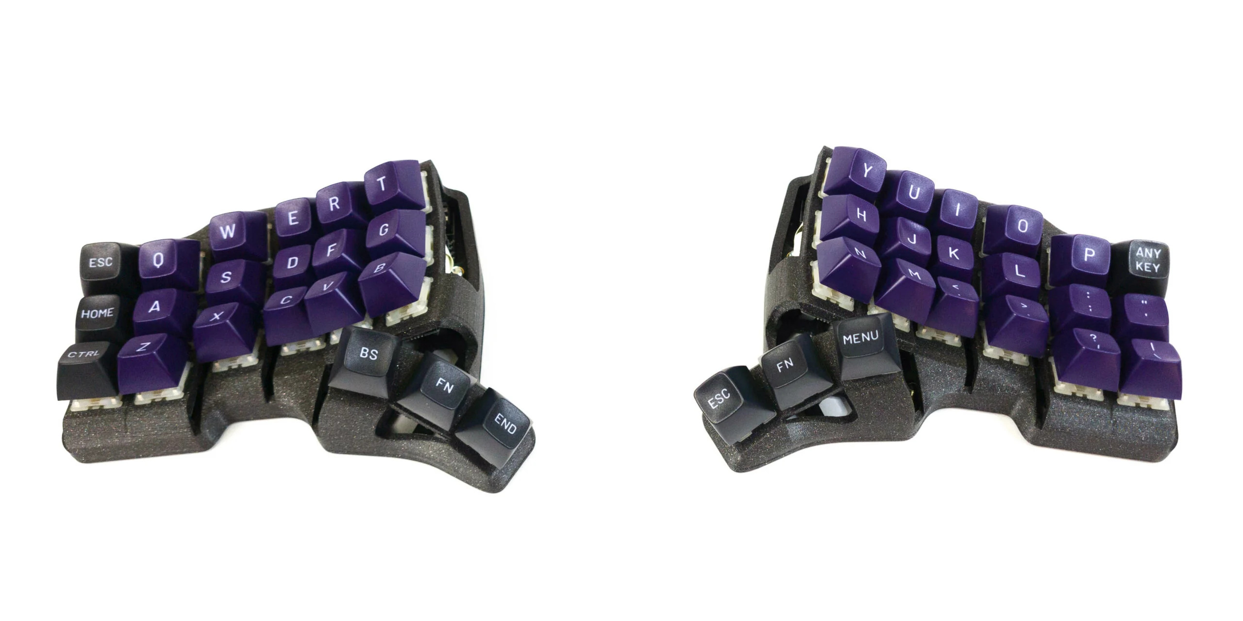 Сплит-клавиатура с сеткой 6×3+3 и manuform-подобным тамб-кластером.