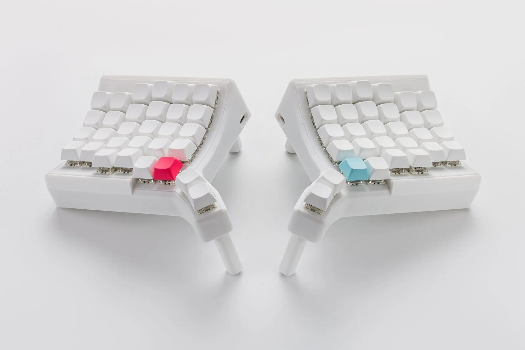 Каждая половинка имеет дополнительные клавиши для безымянного и среднего пальцев. В будущих версиях планируется подключение модулей трекбола, трекпада или энкодера.