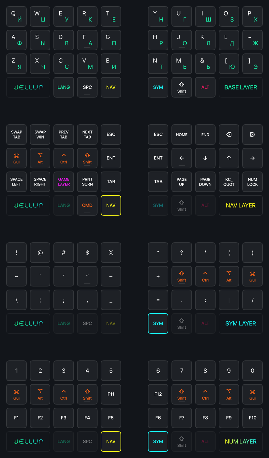 - использование Callum Mods вместо Home-Row Mods