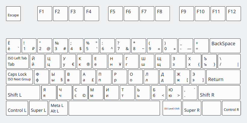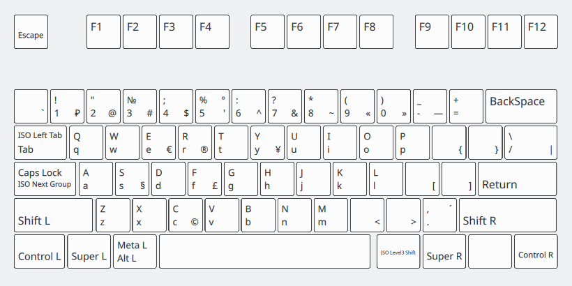 Кросс-платформенная системная раскладка для стандартных клавиатур.